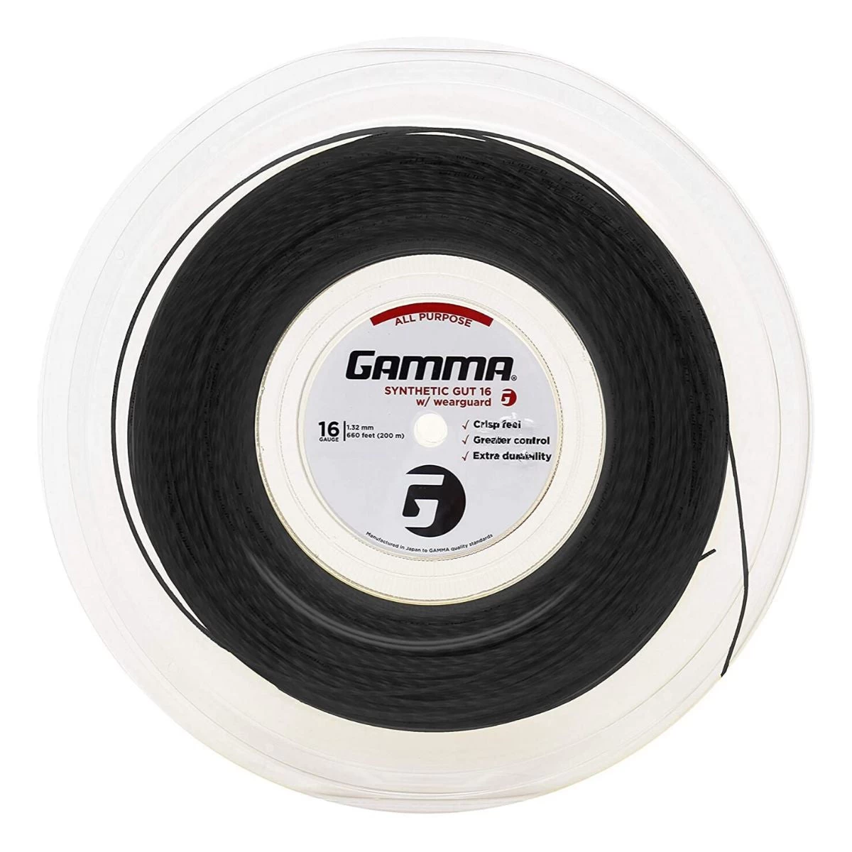 Gamma Synthetic Gut 16/1.30 w/ Wearguard Tennis String Reel (Black) Specs:
