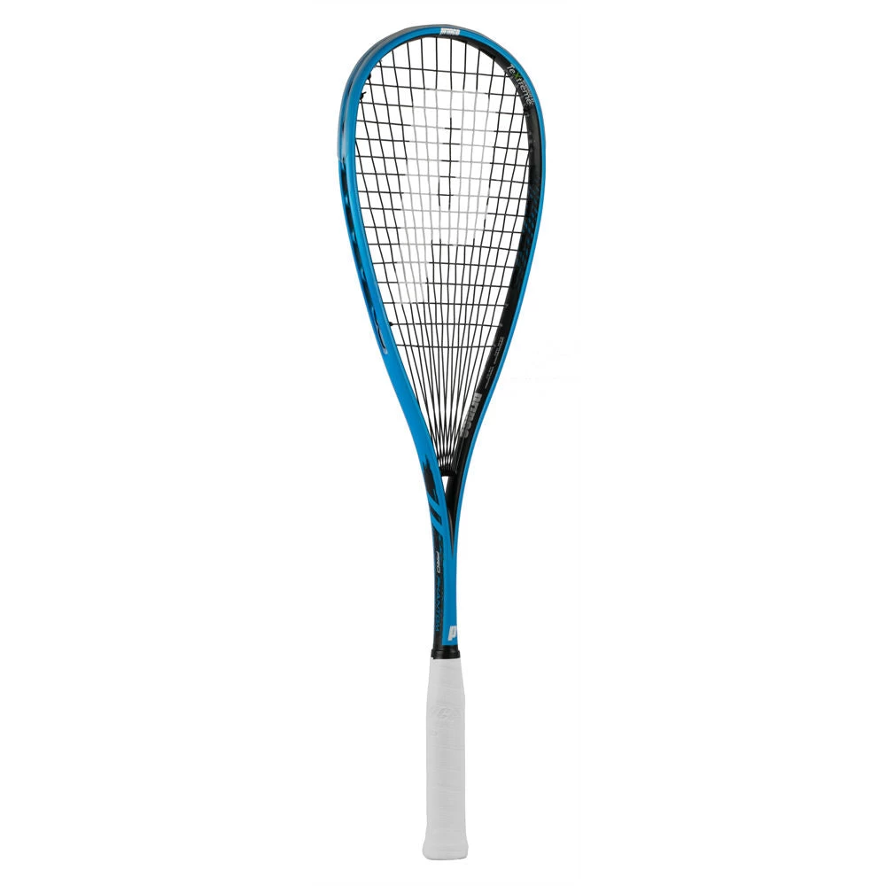 Prince’s most powerful squash racquet in its Pro Series, the Prince TeXtreme Pro Phantom 950 has two of Prince’s most popular technologies. The power of this racquet comes from its large sculpted O3 grommets which makes the racquet more aerodynamic and increases the size of the racquet’s sweet spot because of more string movement. The Power Ring in the Phantom’s throat also adds to the strings’ ability to move more which increases power potential. The 16×16 string pattern is fanned and cuts the ball effectively when trying to put balls into the nick or make a drop shot from the back wall. TeXtreme technology has been added to crown of the racquet head for added stability, and works to prevent torque when making impact with the ball. Overall, the Pro Phantom is a great racquet fro players looking to for a lot of power while also feeling connected to every shot.