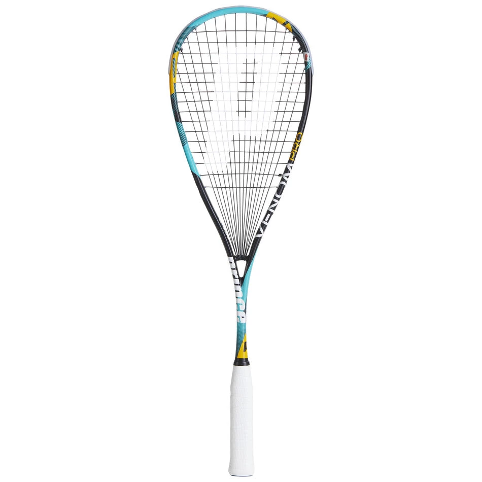The Prince Venom Pro 950 has a new construction that is reinforced with TeXtreme & Twaron. Improved hoop strength and head crunch, doubled standards for impact strength requirements. Prince Venom Pro 950 Squash Racket is an elite performance racket designed for power and control. The Power Ring technology is an inverted ‘ring’ in the throat of the frame that creates longer main strings of uniform length, for enhanced power across the entire string bed. A grommet less throat increases frame durability and stiffness. Prince’s patented O3 ports at 12, 3 and 9 o’clock significantly reduce aerodynamic drag increasing swing speed by 24% and enlarging sweet spot size by up to 59%.