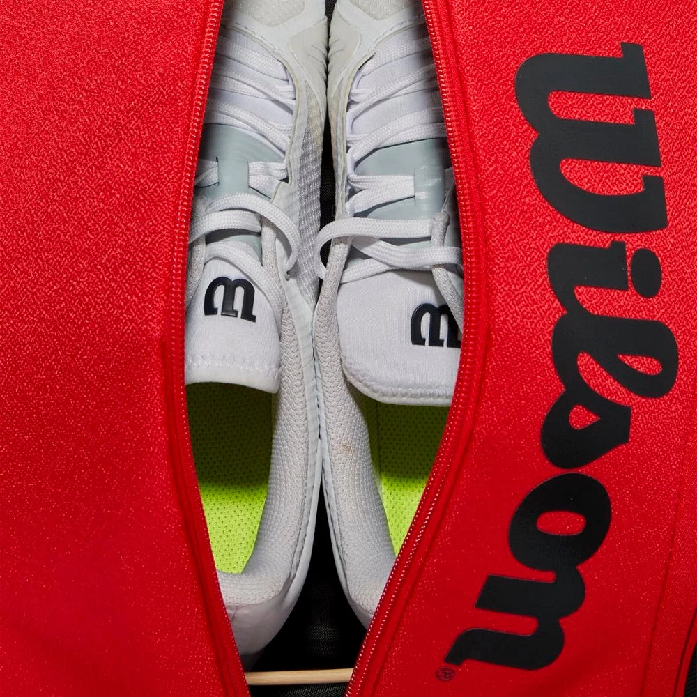 Greatness is one of many words synonymous with Roger Federer. Joining the pro circuit in 1998, he’s played in four decades as a professional. His historic run has captured the eyes of fans for many years, and the 2020 version of his Wilson bag line does that to, capture the eyes of anyone who sets their eyes on it. Two racquets can be stored in the rear back pocket, with a lock zipper design preventing the racquet from having unwanted movement in the bag. The main pocket has a pocket that can hold a tablet and can store shoes, apparel, and gear. There are pockets on both sides, and the left pocket has Thermoguard making it suitable for storing drinks and food. Ergonomic shoulder straps, chest straps, and cushioned back pads reduce weight. The material has a unique feeling of tension and uses a polyester bonding fabric with excellent shape stability. The Roger Federer signature at the side adds a classy touch from an all time great and classy player.