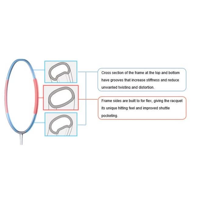 The Yonex ArcSaber 11 Pro badminton racquet delivers decisive control thanks to a stable frame construction and increased shuttle contact time on the string bed. The Yonex ArcSaber 11 Pro provides players with great frame stability thanks to its new frame structure that has a stiff upper and bottom of the racquet face to reduce twisting at impact. Adding to the Yonex ArcSaber 11’s stability is Yonex’s Control-Assist Bumper, a grommet piece at 12 o’clock on the frame featuring T-Anchor, that help lock in vertical strings for more consistent movement, improving accuracy. The Yonex ArcSaber 11 extends shuttle contact time, the side of this racquet has a softer feel thanks to its construction, promoting more flexibility around the sweet spot. Pocketing Booster, a proprietary rubber-like material strategically lines a portion of the frame increasing the elasticity of the frame’ flex and positively impact shuttle hold and launch speed. The Yonex ArcSaber 11 Pro is a great all-around badminton racquet that is stiff and maneuverable thanks to its even balance while providing improved dwell time on your shots.